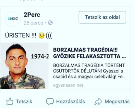 Egy kattintásvadász oldal a neten azt posztolta még csütörtökön, hogy a showman öngyilkos lett, saját kezűleg vetett véget életének, felakasztott magát. Persze, ebből semmi sem igaz, Győzike meg is osztotta saját Insagram-oldalán a hírt, nehogy valaki felüljön a híresztelésnek.